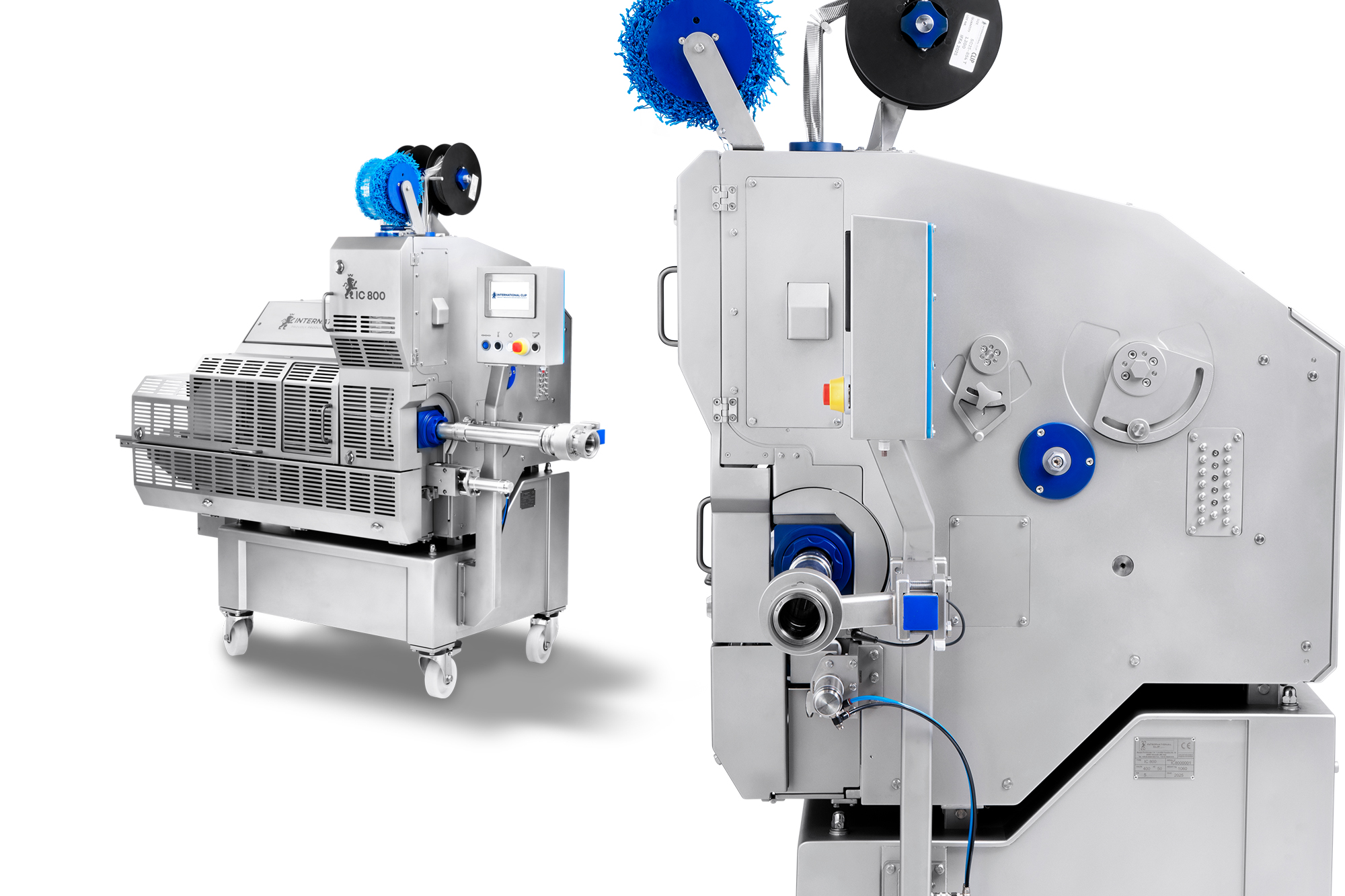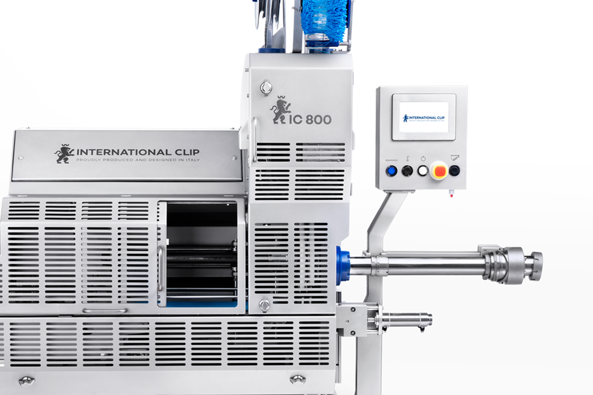 The Automatic double clipping machine IC 800 is the new International Clip clipping machine designed for processing the 800 series clips, ideal for the production of long and straight products for cold cuts, moulded hams, mortadella up to 280 calibre. Fibrous casings, collagen, textiles and plastics can be processed. The machine retains maximum reliability and ease of use: